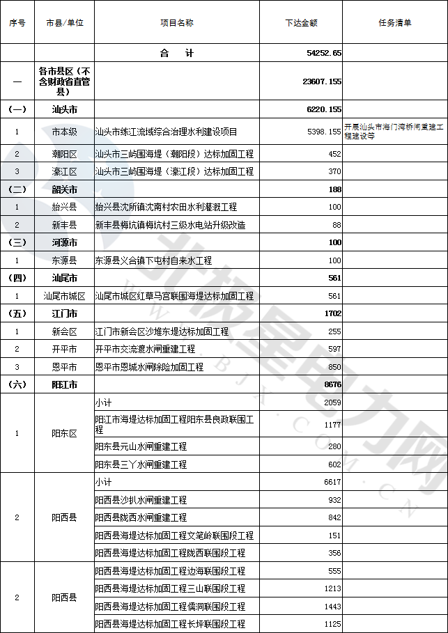 近日,廣東省水利廳公布關(guān)于2018年省級(jí)水利建設(shè)與改革發(fā)展專項(xiàng)資金54252.65萬元安排計(jì)劃的公示,包括水電站升級(jí)改造等水利水電項(xiàng)目工程。全文如下:
